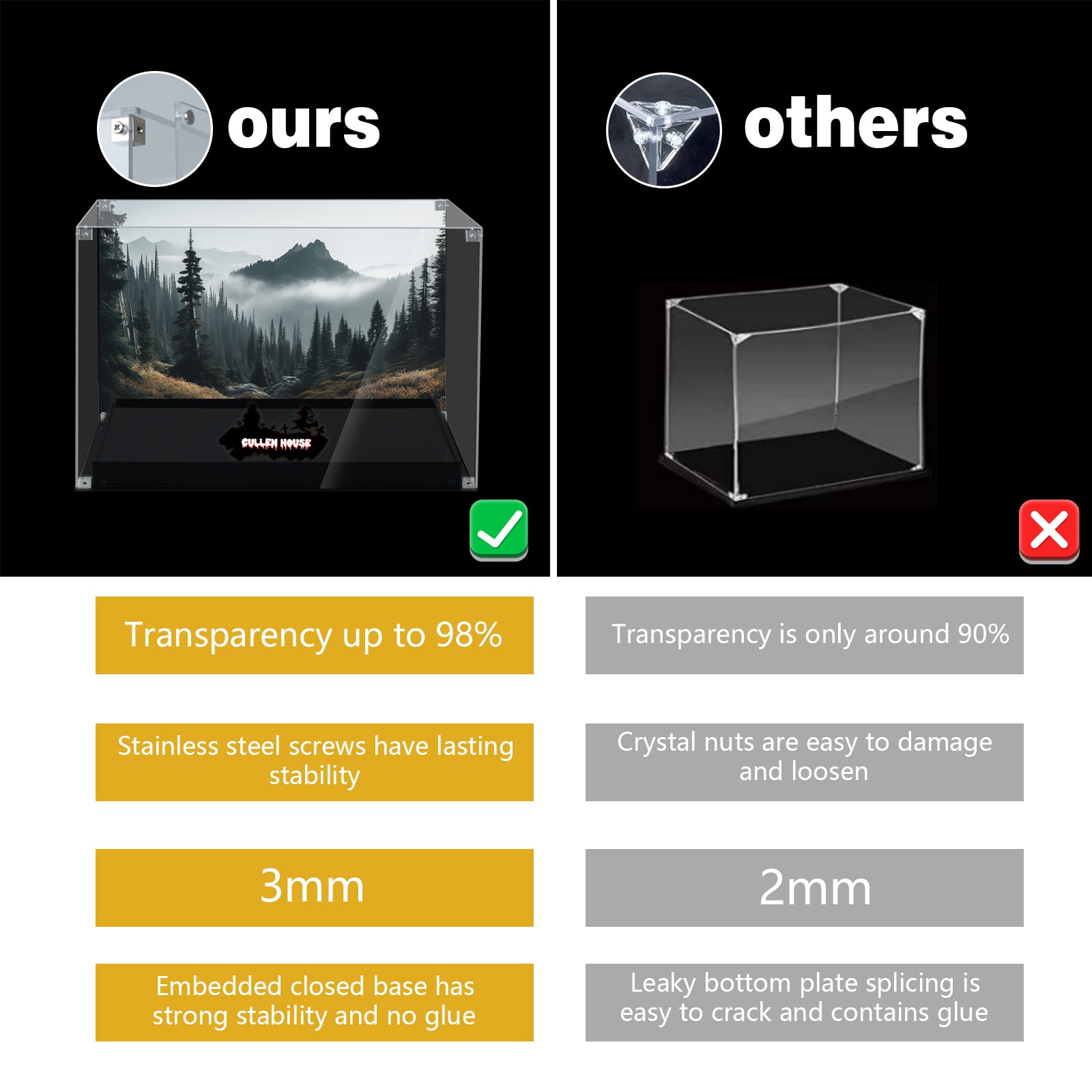 Ultra-clear 3 mm aviation-grade acrylic: 98% ultra-high light transmittance, showing every detail of the model.