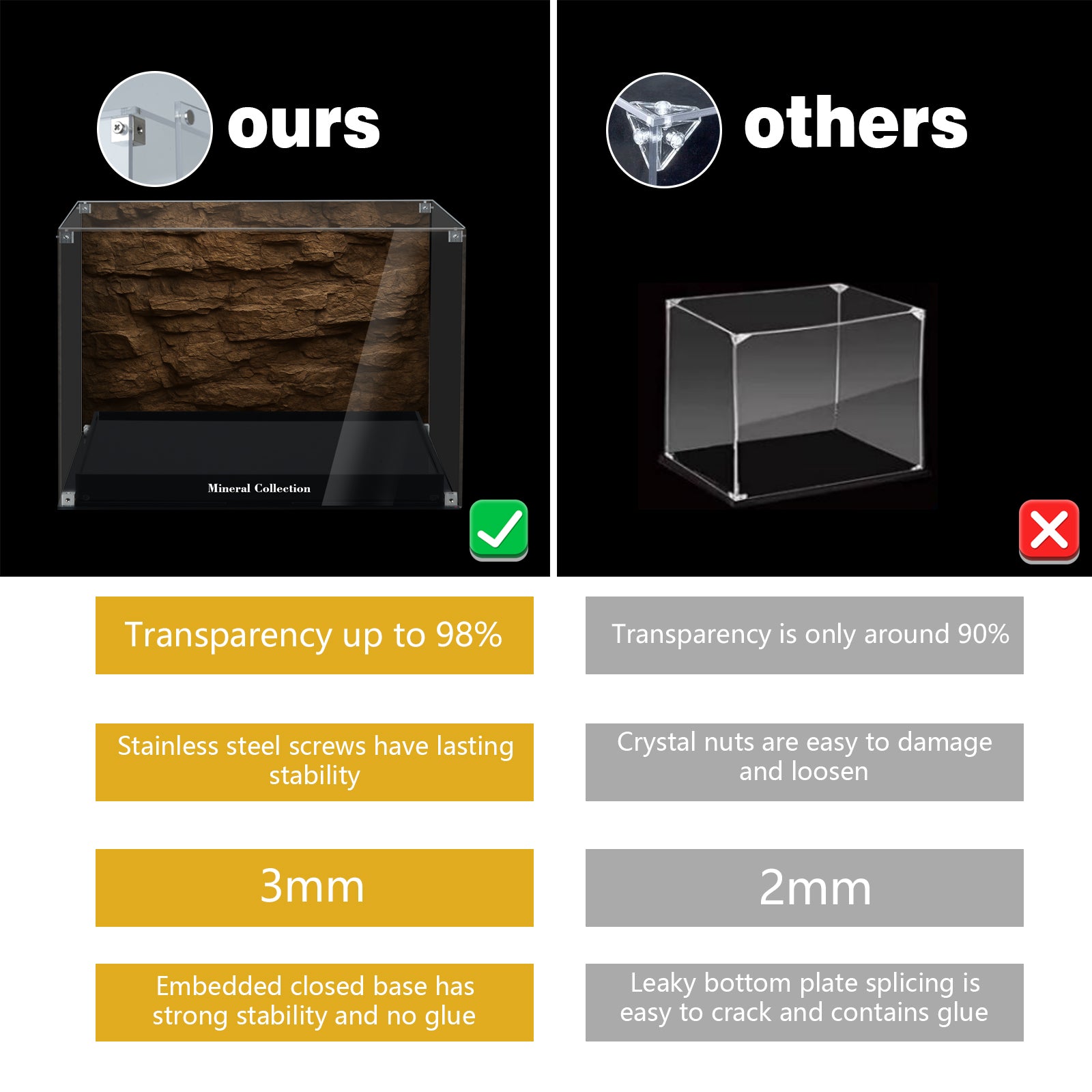 Ultra-clear 3 mm aviation-grade acrylic: 98% ultra-high light transmittance, showing every detail of the model.