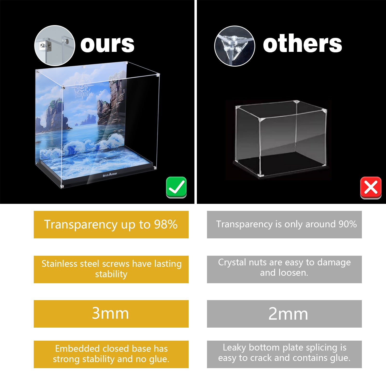 Ultra-clear 3mm aviation-grade acrylic: 98% ultra-high light transmittance, showing every detail of the model.